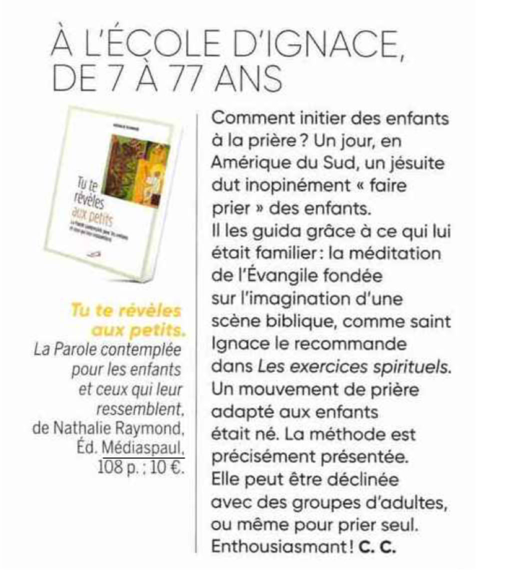 Ce partage a plusieurs vertus : mieux fixer ce qui vient d’être imaginé, créer une communion au niveau du groupe, stimuler des enfants qui auraient de la peine à imaginer, leur donner des idées, encourager à formuler à l’oral quelque chose qui vient de la profondeur de leur être, les habituer à parler en public… Plus les enfants sont jeunes, plus ils parlent ; pour des adolescents, cela devient plus compliqué. Il faudra donc avoir une attitude adaptée au public, veiller à limiter la prise de parole afin que tous puissent parler dans un cas, stimuler, encourager dans l’autre. On veillera évidemment à ce que personne ne se moque de ce que l’autre a dit. À chaque partage, on s’assure que l’enfant a bien été entendu et compris par les autres, s’il parle trop bas, on n’hésitera pas à répéter ce qu’il vient de dire de manière à ce que tout le monde en profite. La personne qui guide valorise chaque prise de parole. Souvent les adultes croient que les enfants vont imaginer n’importe quoi, c’est archi-faux, ils sont extrêmement sérieux dans leur imagination. Il peut néanmoins se produire trois cas de figure quand ils partagent 1) ce qu’ils disent est cohérent et n’entre pas en contradiction avec l’Evangile (ex: la maison où a grandi Jésus était rose…) : on valorisera en disant par exemple « oh elle a l’air très belle cette maison rose, très bien »… 2) on a un doute sur ce qu’ils disent (ex: la maison n’avait aucune fenêtre ou c’était l’atelier de Joseph), on réagira alors au minimum : «ah bon ?»… 3) ce qu’ils disent n’est pas cohérent avec l’époque ou avec la personnalité de Jésus (ex: la maison avait un antenne parabolique ou Jésus n’arrêtait pas d’insulter ses camarades), dans ce cas-là, ce qui est le plus efficace sans bloquer l’enfant est de recourir à l’avis des autres en disant par exemple : est-ce que ça existait la TV et les antennes paraboliques à l’époque de Jésus ? ou est-ce que vous croyez vraiment que Jésus était violent et insultait ses copains ? Très logiquement les autres enfants vont répondre « non » et alors le guide pourra confirmer. Parfois aussi l’enfant qui dit une « bêtise » en est lui-même parfaitement conscient et cherche juste à jouer… Dieu lui-même a beaucoup d’humour donc il n’est pas question de rabrouer l’enfant évidemment…